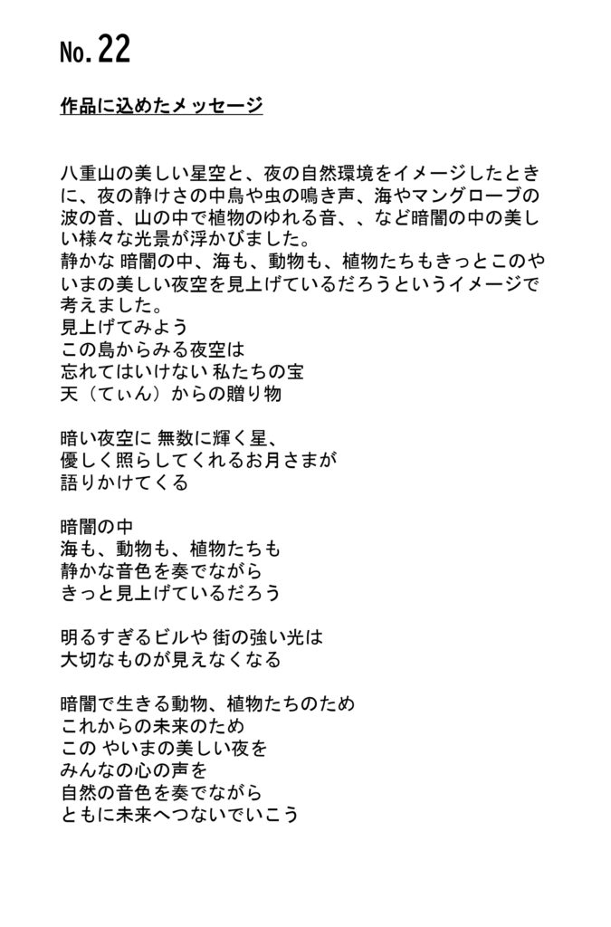 たくさんの想いが込められた応募作品の中から、西表石垣国立公園ダークスカイパークにふさわしいと感じた一作に、みなさまの一票をお寄せください☆彡